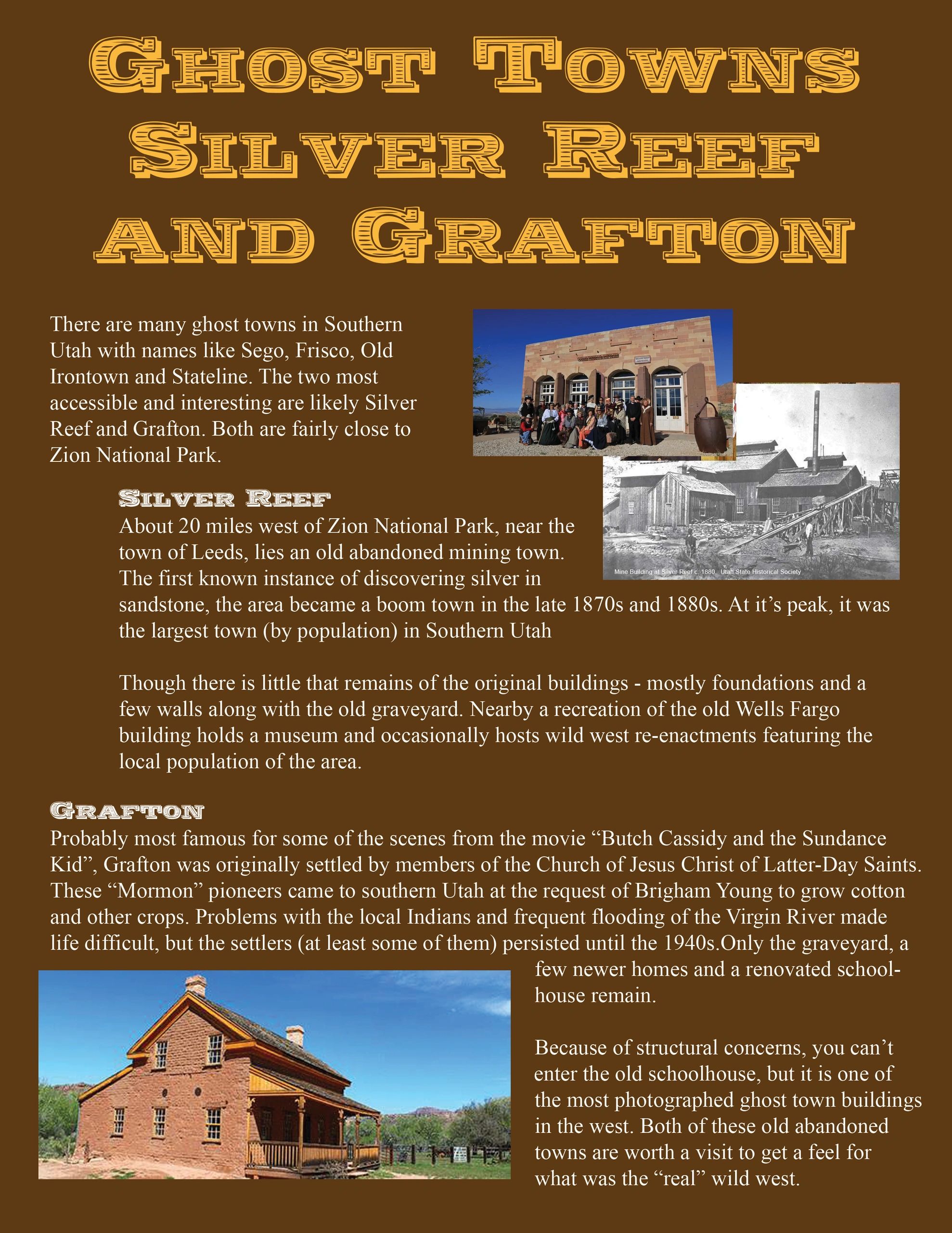 Read about the history of two of the best and closest ghost towns, one of which was featured in the movie, "Butch Cassidy and the Sundance Kid"